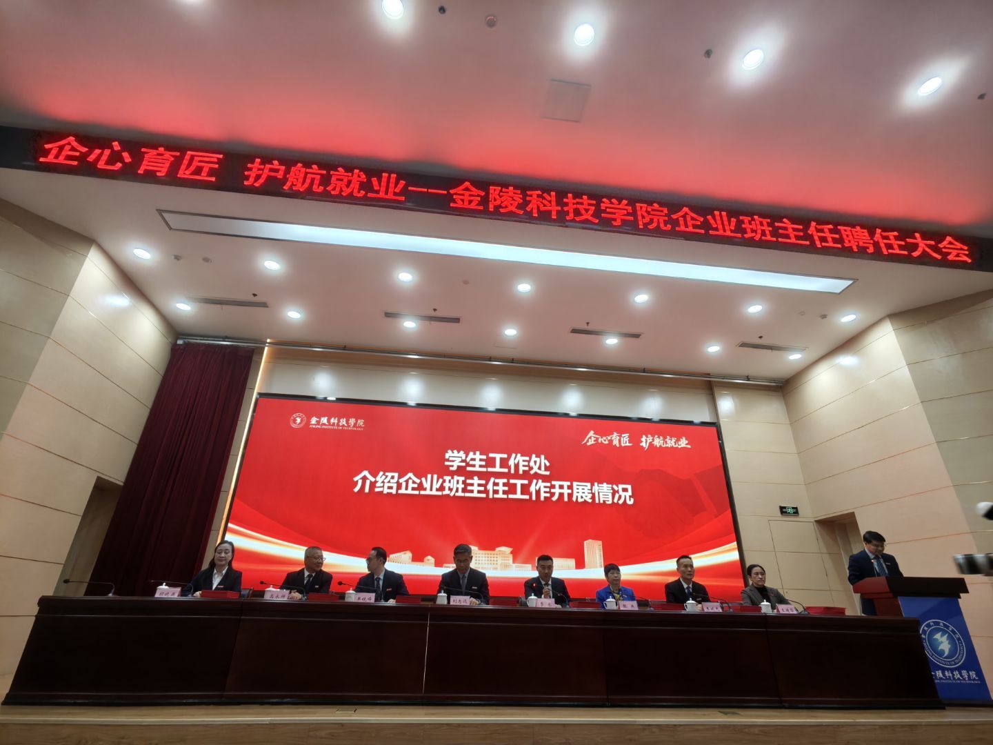 2025年11月26日,金陵科技学院企业班主任聘任大会在金陵科技学院科技楼报告厅举行。江苏evo视讯官网科技(集团)股份有限公司唐佩、徐敏博、罗涛、孙文雅同志受聘金陵科技学院软件学院企业班主任,并随后在学院组织下,参观金陵科技学院科创空间,参加学院研讨会。